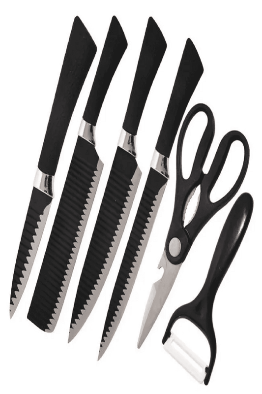 Juego Kit Set Cuchillos Todo En Uno 6 Piezas Profesionales Color Negro