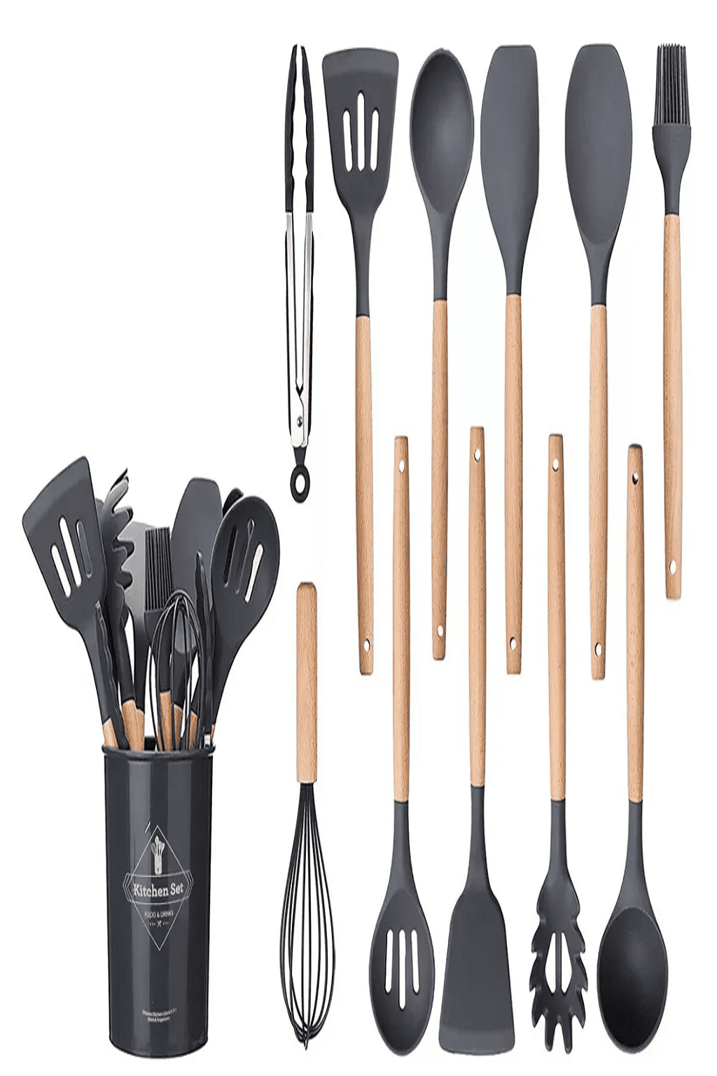Cubiertos En Silicona, Espátula Con Mango De Madera X 12