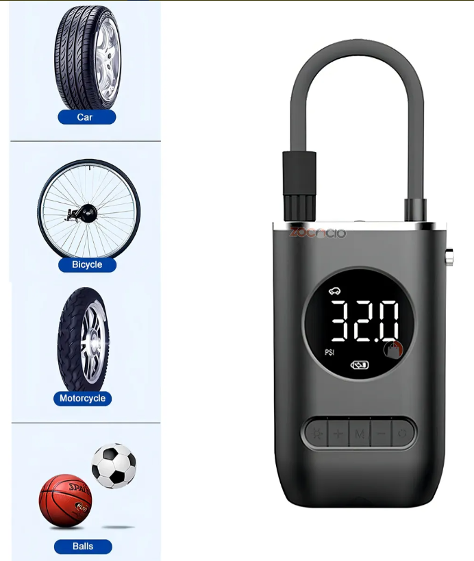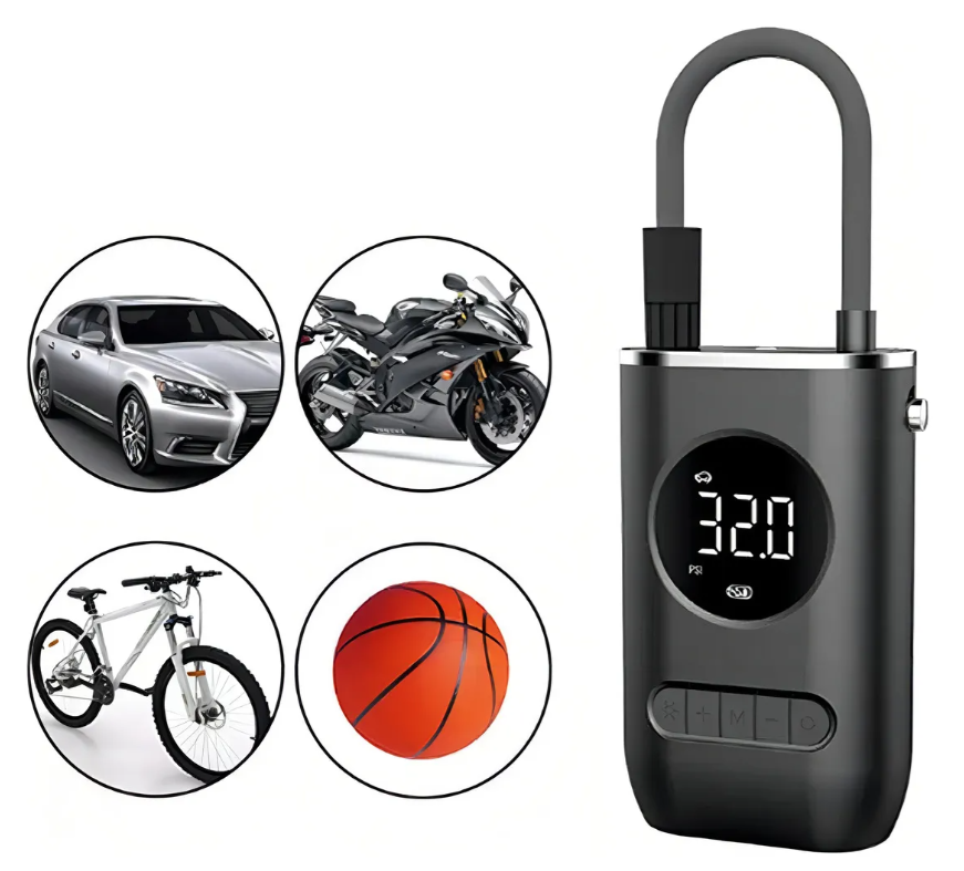 • Capacidad máxima de presión: Hasta 150 PSI, ideal para neumáticos de coche, bicicleta y otros accesorios deportivos