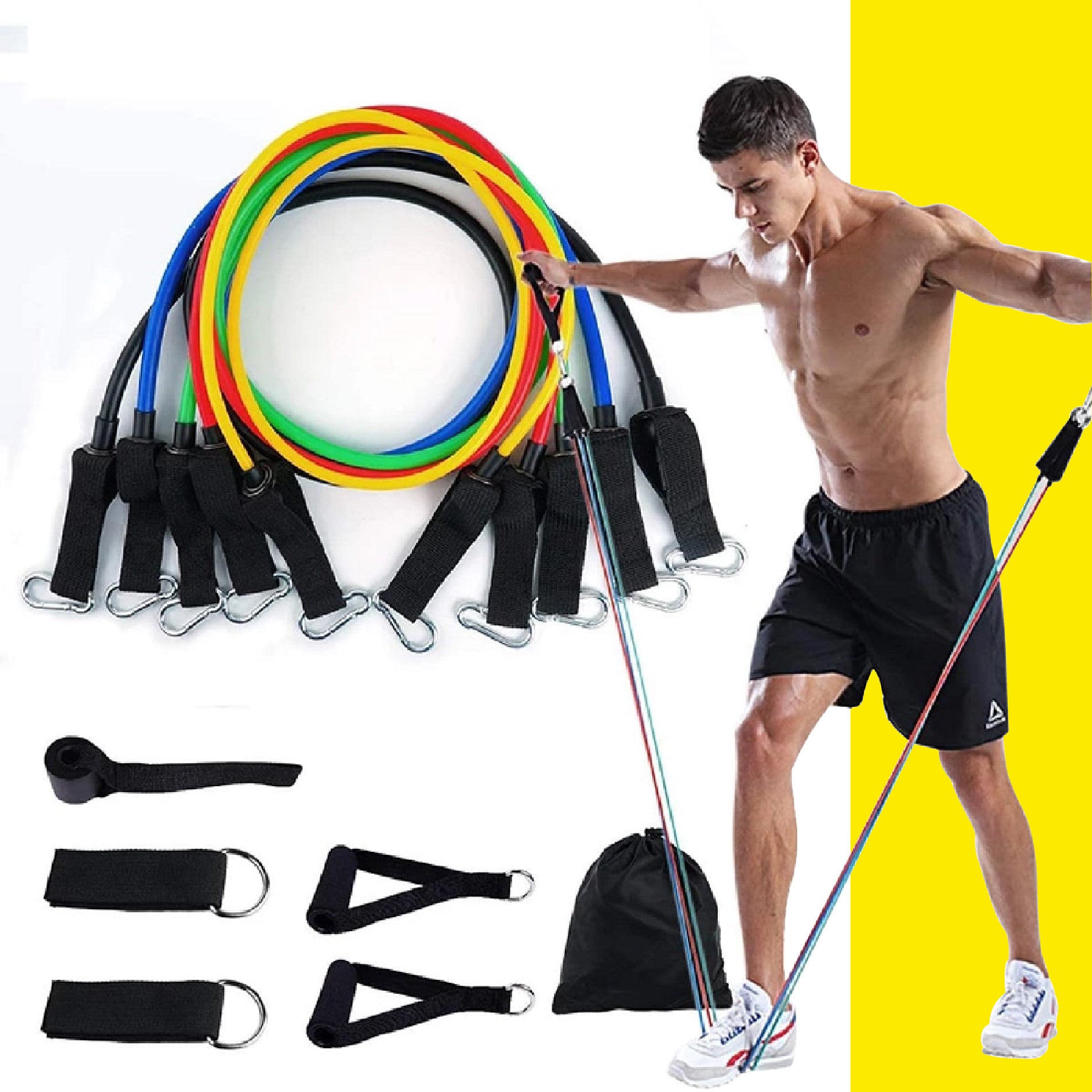 Con este set de 5 bandas de diferentes resistencias, podrás trabajar todos los grupos musculares de tu cuerpo de manera efectiva. Desde ejercicios de tren superior hasta rutinas para el tren inferior, yoga, Pilates y más, este kit cubre todas tus necesidades de ejercitación. Cada banda tiene una resistencia específica para que puedas ajustar la intensidad de tu entrenamiento: